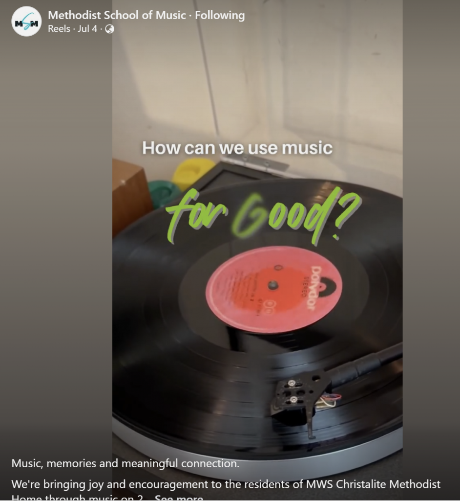 -Collaboration with Methodist School of Music to bring cheer to Christalite Home through music and reminiscence